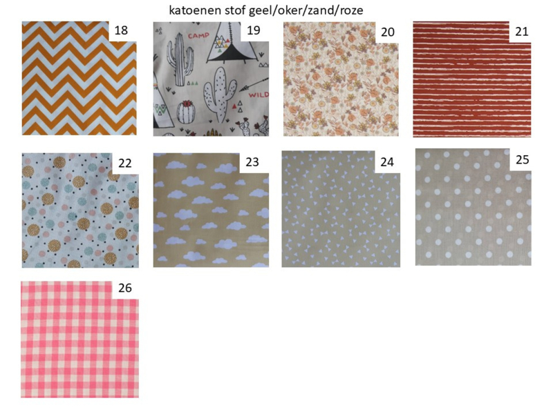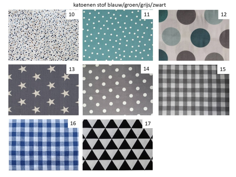 Mocht u de kleur van de stof thuis willen bekijken, dan kunt u een gratis staal opvragen. U kunt dit doen door een mail te sturen naar: info@kleintjebaby.nl